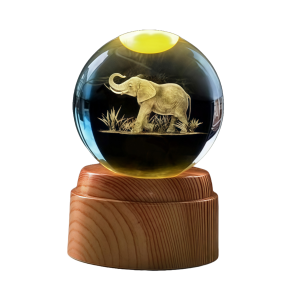 Discover the perfect blend of artistry, innovation, and ambiance with the Rotating 3D K9 Crystal Globe Light with real wood base. Expertly crafted from premium K9 crystal, enhance your décor with this stunning crystal-clear glass ball, featuring a detailed 3D laser-engraved design suspended inside. The intricate engraving creates a captivating illusion of depth and dimension from every angle. Set on a rotating, multi-colour LED light base, the glass ball slowly turns while glowing with a vibrant spectrum of colours bringing the design to life. Ideal as a decorative centrepiece or thoughtful gift, this globe light adds a touch of sophistication and wonder to any space.